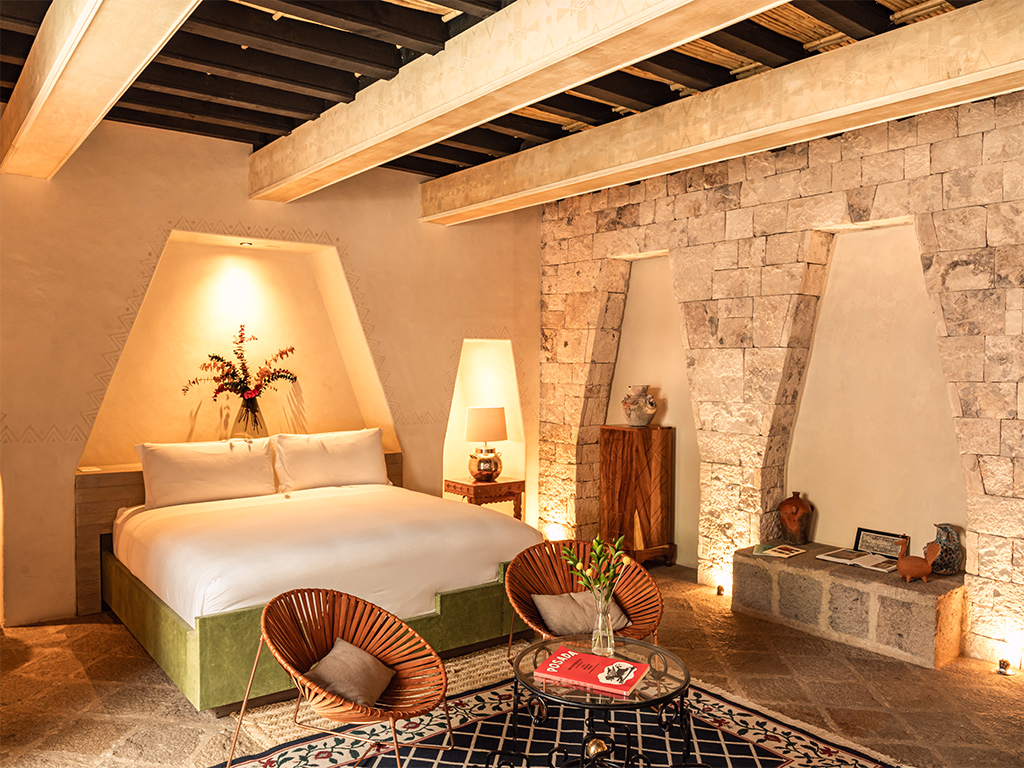 Inspirándose en el famoso Museo Anahuacalli de Diego Rivera, esta suite cuenta con espectaculares arcos hechos con piedra local que evocan un templo maya. Incluye un baño de inspiración mixteca que se utiliza tradicionalmente para rituales de purificación que ofrecen tranquilidad y lujo.